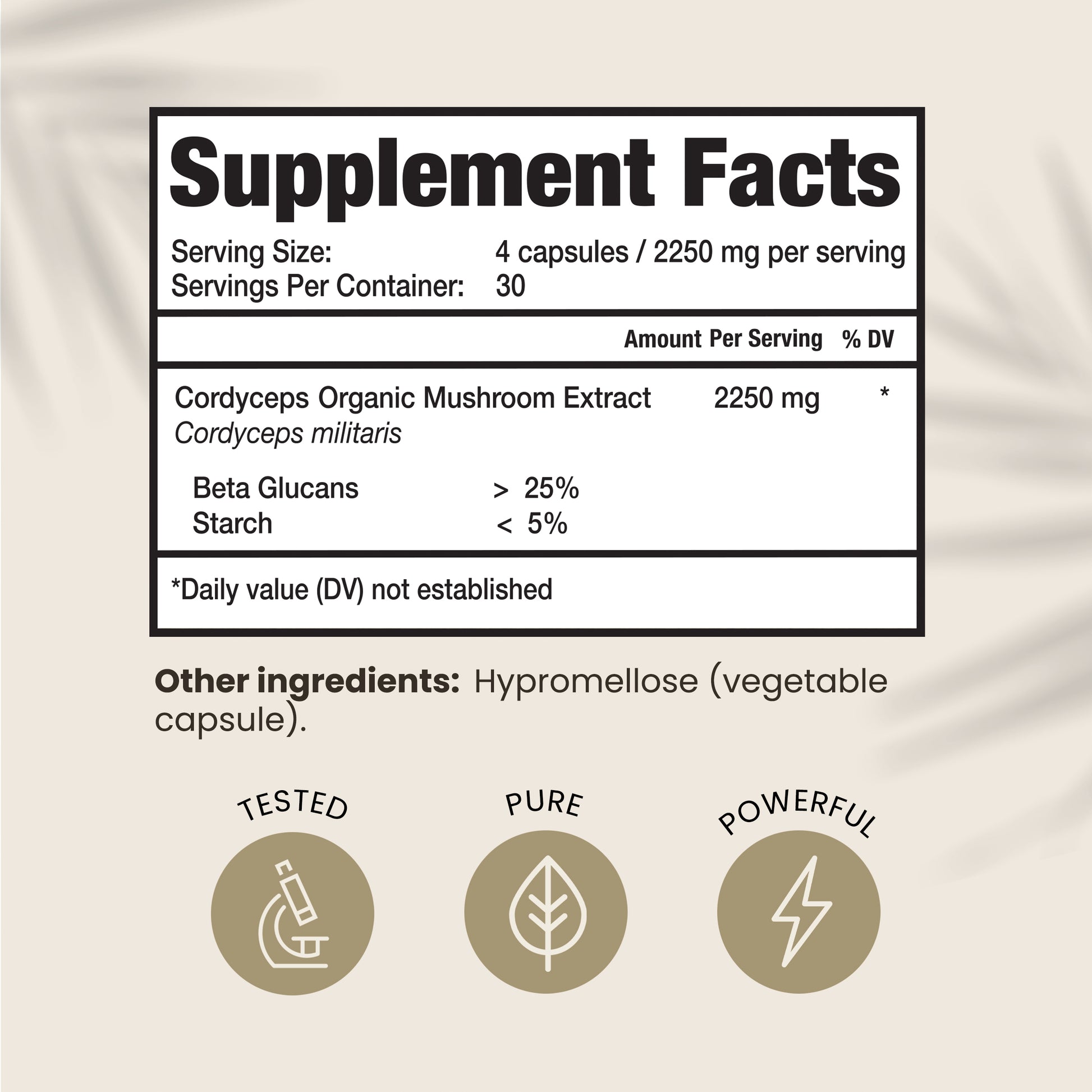 • Contains Cordyceps organic mushroom extract (Cordyceps Militaris)