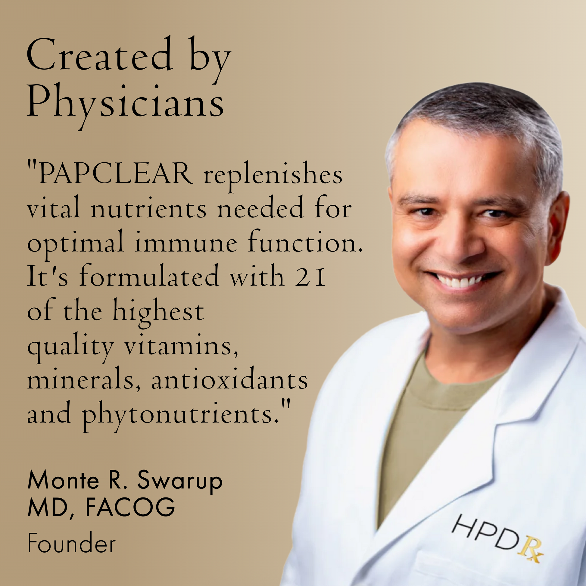PAPCLEAR is a high-potency, advanced supplement specially formulated by Dr. Monte, one of the top OB/GYNs in the country, to help keep your immune system function optimally to support the cervical health of women. PAPCLEAR improves natural immunity by delivering a complex, complete, and powerful blend of 21 clinically researched vitamins (B5, B12, C, D3, and E), minerals (copper, iodine, iron, manganese, molybdenum, selenium, vanadium, and zinc), and antioxidants and phytonutrients (green tea extract, organic reishi, organic shiitake, lycopene, astragalus, and broccoli seed extract) in appropriate doses. PAPCLEAR is an immunity boosting multivitamin so men and women can naturally respond to HPV.